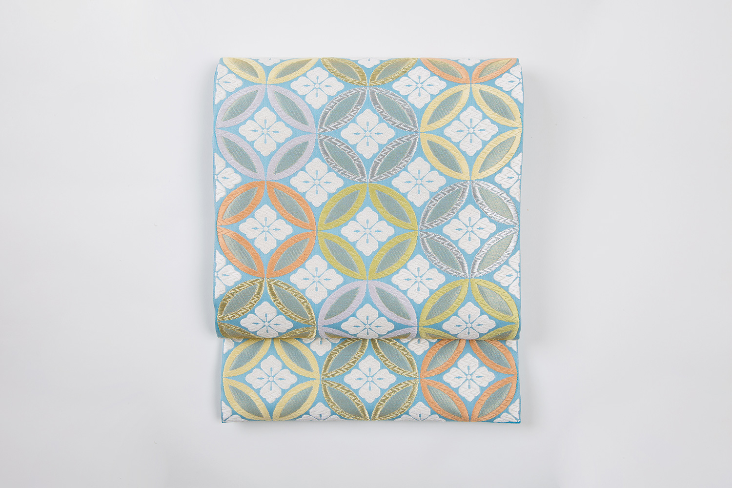 Fukuro Obi in damask weave, light blue, seven treasures and flower diamonds