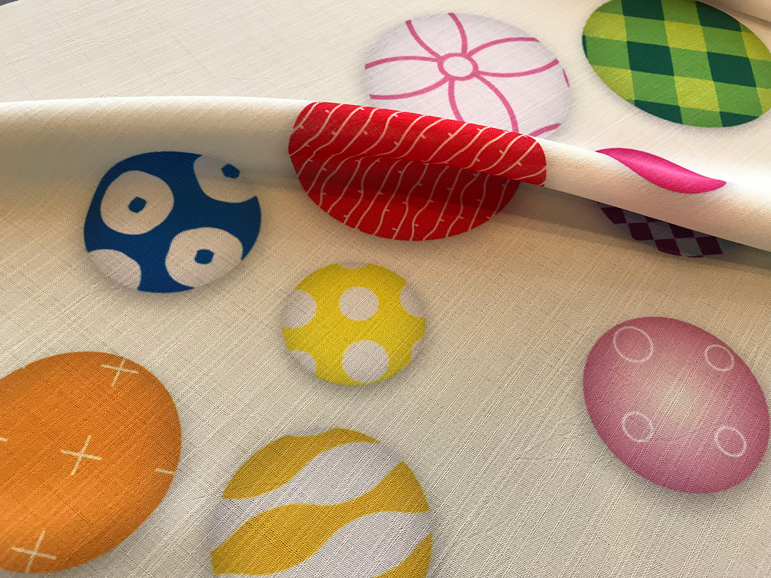 Yukata with white ground color, colorful buttons