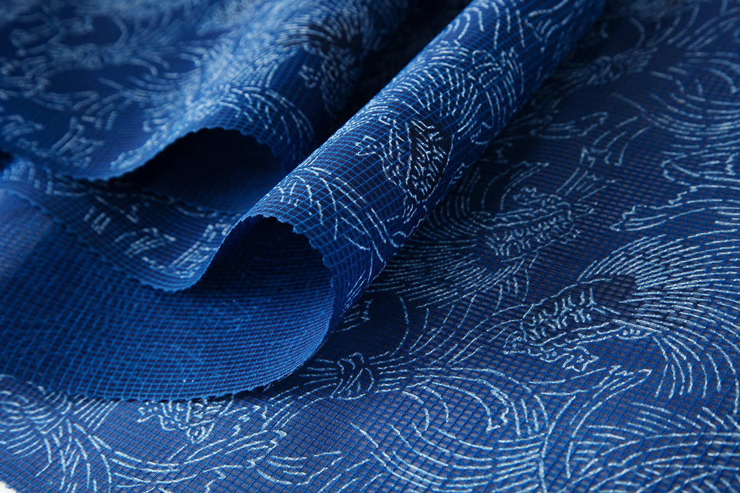 正藍染めの絹紅梅のシックで趣きのある一枚です